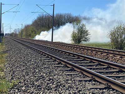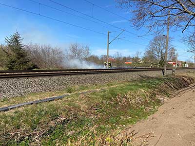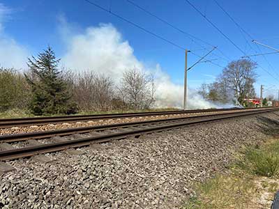 Jerrishoe - Ein Güterzug hatte durch festsitzende Bremsen und dadurch entstehenden Funkenflug, auf der Bahnstrecke von Barderup bis nach Jübek, für mehrere Flächenbrände gesorgt.
