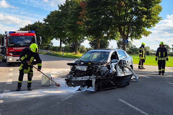 Ein Fahrer eines grauen Opel ist beim Abbiegen mit einem Anhänger-Gespann kollidiert. Wir wurden zur Unterstützung von Rettungsdienst und Polizei nachgefordert. Mit 2 Feuerwehrfahrzeugen sicherten wir die Einsatzstelle aus Richtung Tarp und Richtung Wanderup ab. Die Besatzung des Löschfahrzeugs kümmerte sich um die Aufnahme auslaufender Betriebsstoffe, beseitigte Trümmer von der Straße und unterstützte bei der Bergung der verunfallten Fahrzeuge. Die L15 war für die Dauer des Einsatzes voll gesperrt.
